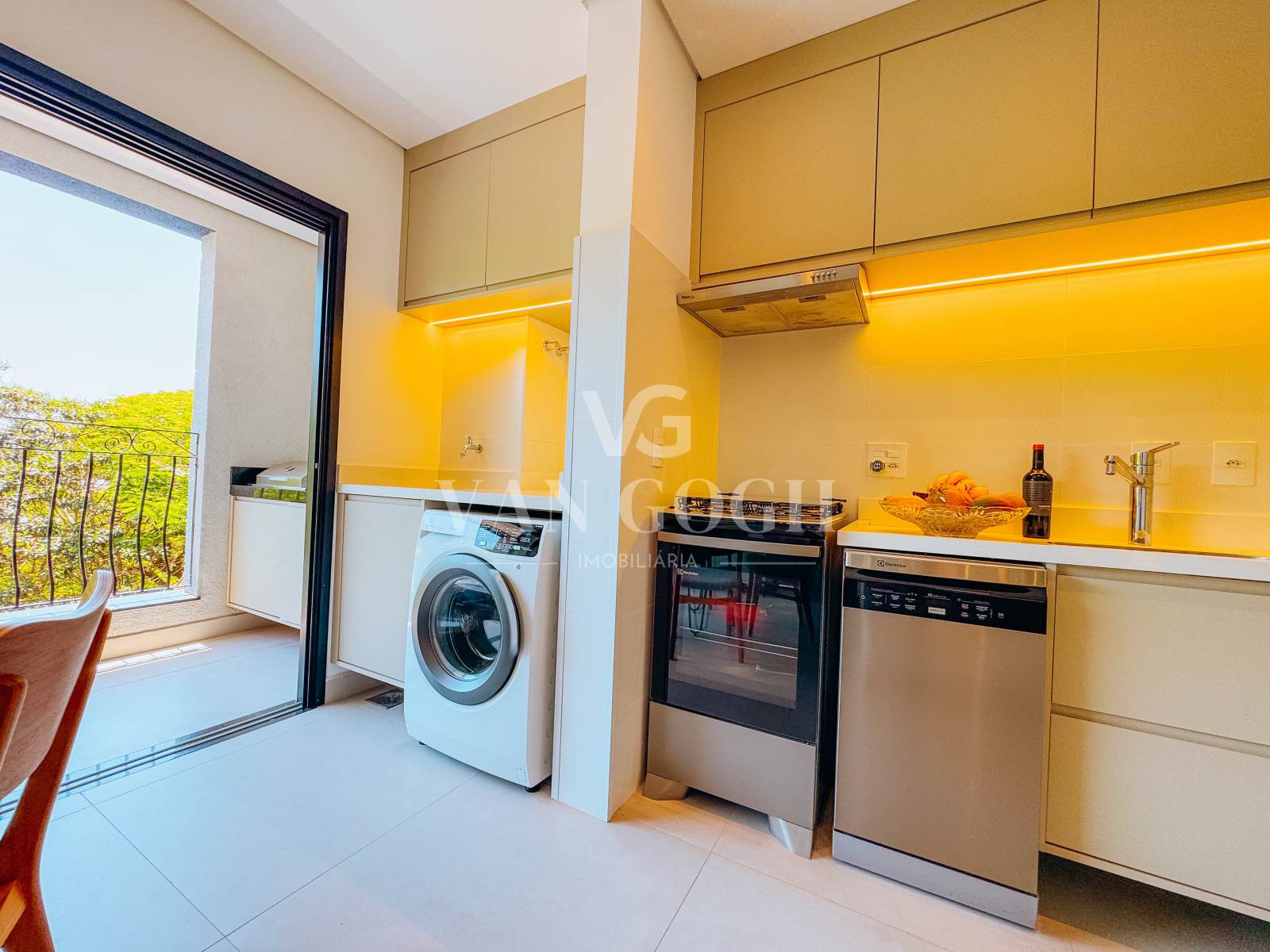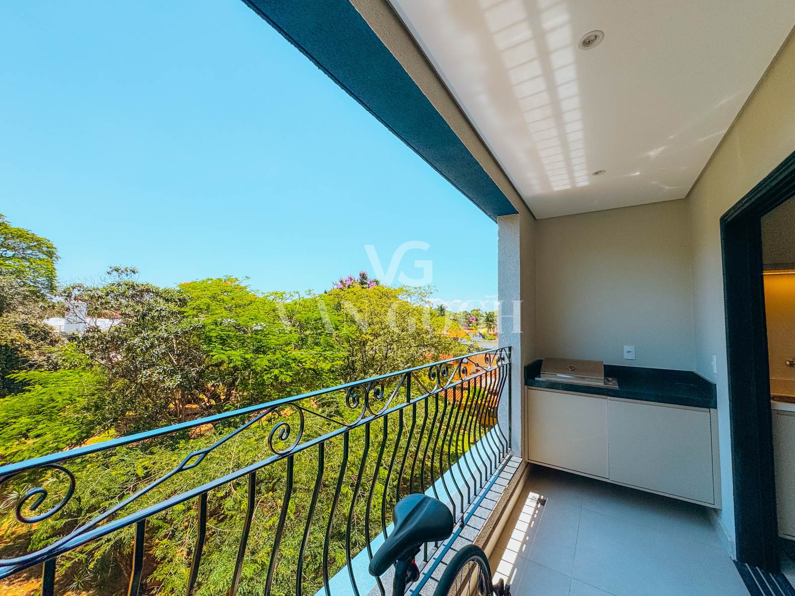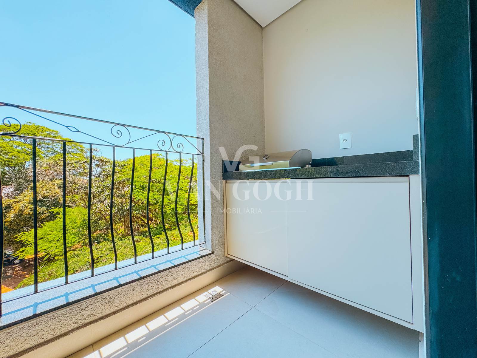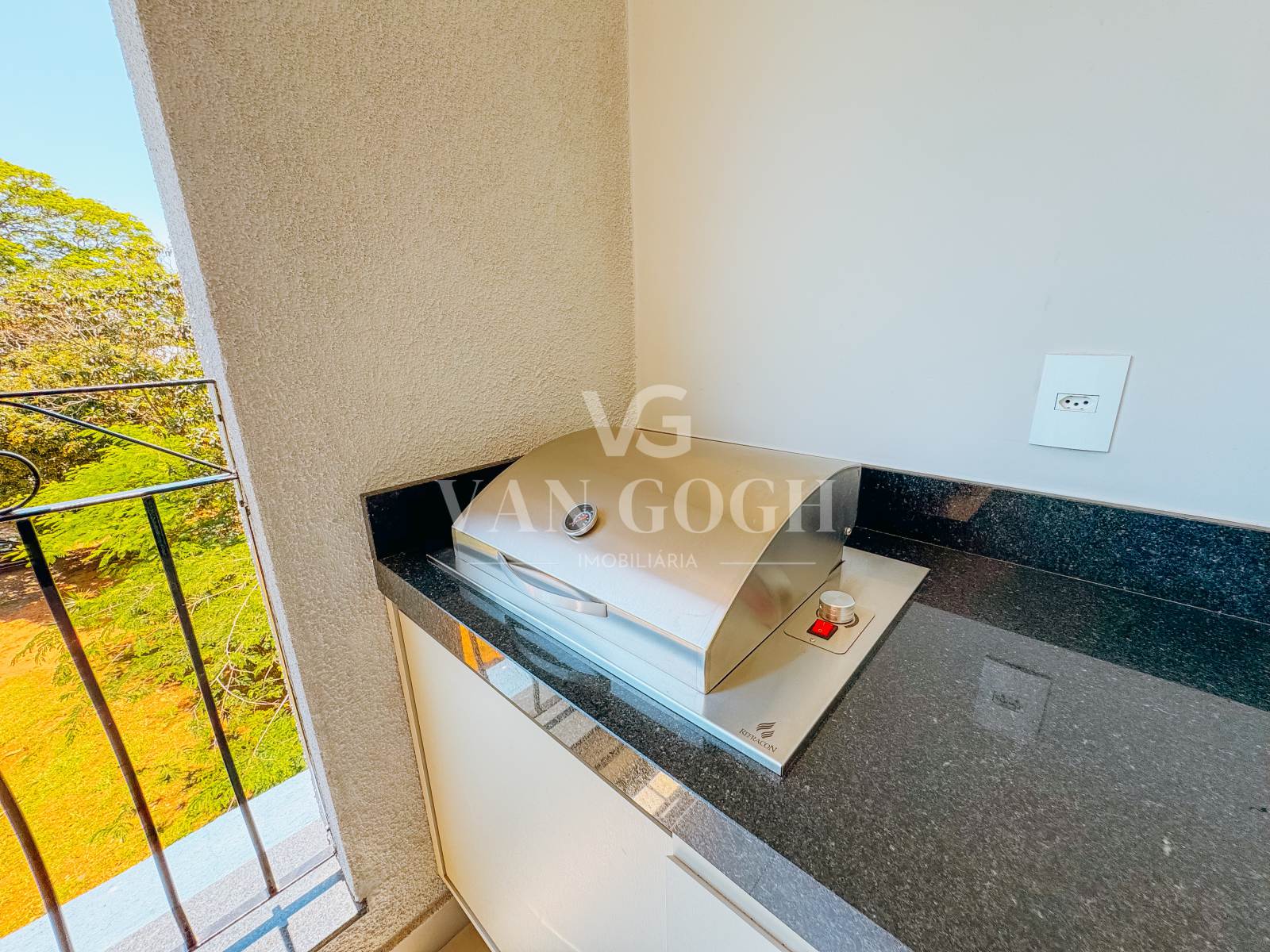 A varanda gourmet é um dos destaques do imóvel, contando com armários, churrasqueira elétrica e uma vista agradável para a copa das árvores, proporcionando um ambiente perfeito para relaxar. O apartamento possui ainda uma vaga de garagem coberta.