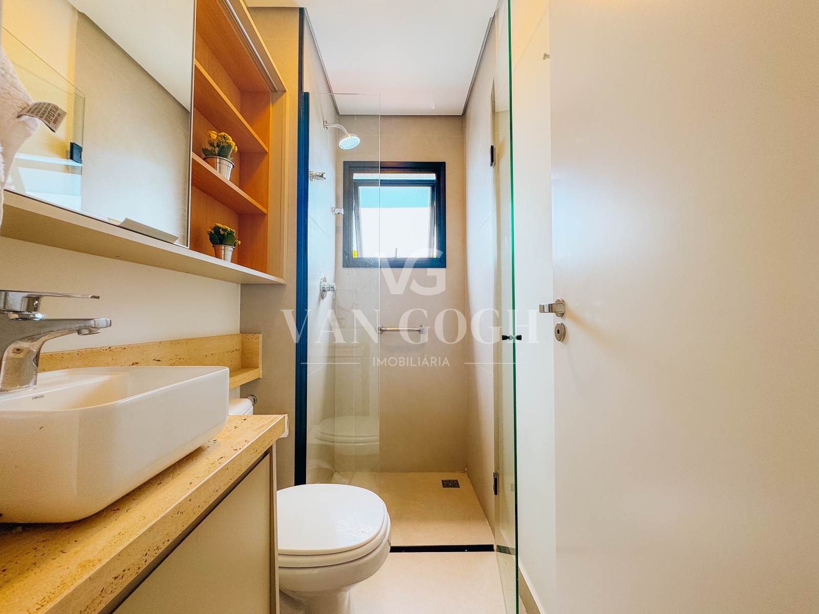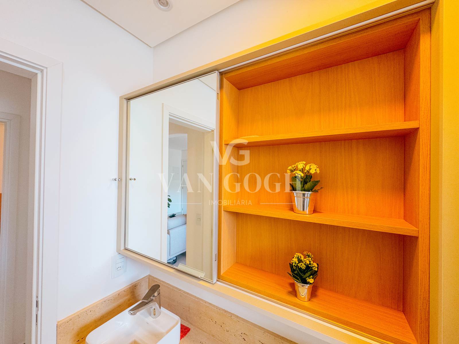 Este apartamento de 58m² foi planejado para oferecer conforto, praticidade e um ambiente completamente pronto para morar. Com dois quartos equipados com armários planejados, cabeceira e persianas elétricas, o espaço oferece privacidade e funcionalidade. O banheiro conta com armários sob medida, bancada em mármore travertino bruto e box em vidro, trazendo um toque de elegância ao dia a dia.
