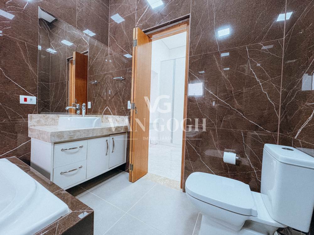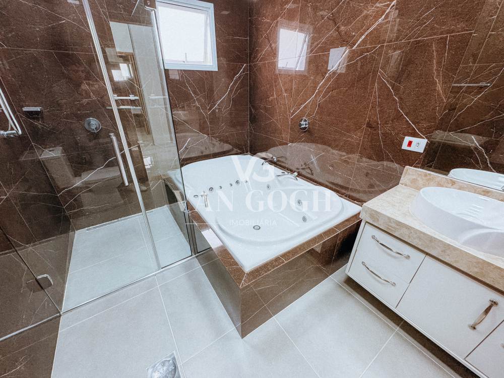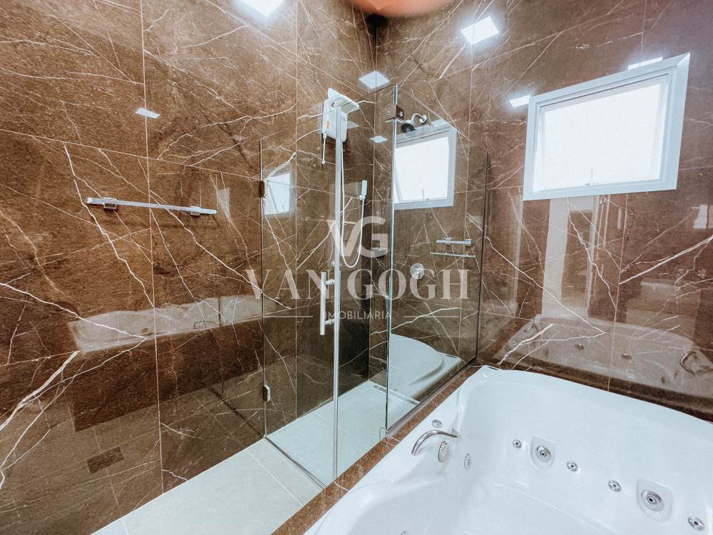 A cozinha conta com armários planejados, garantindo organização e praticidade. Todos os cômodos da casa possuem móveis sob medida de alta qualidade, que valorizam o projeto e otimizam cada ambiente.