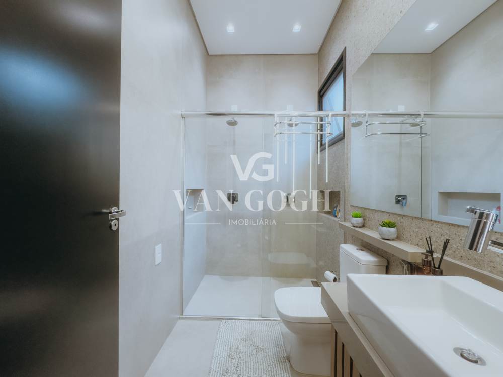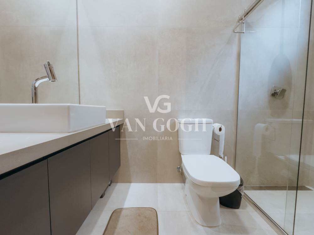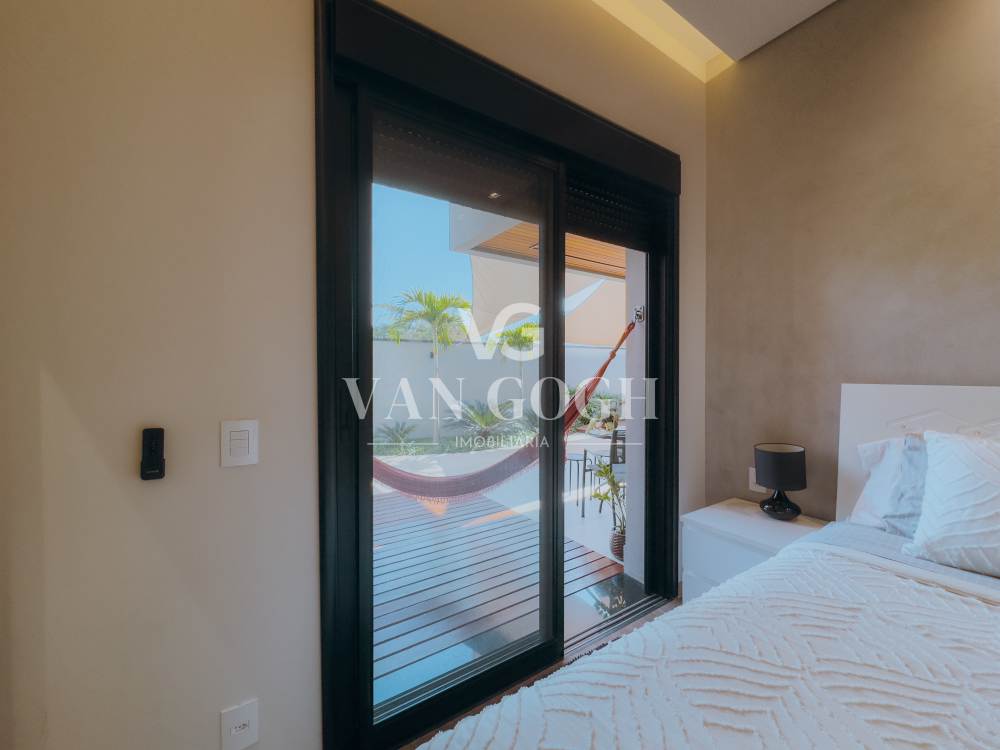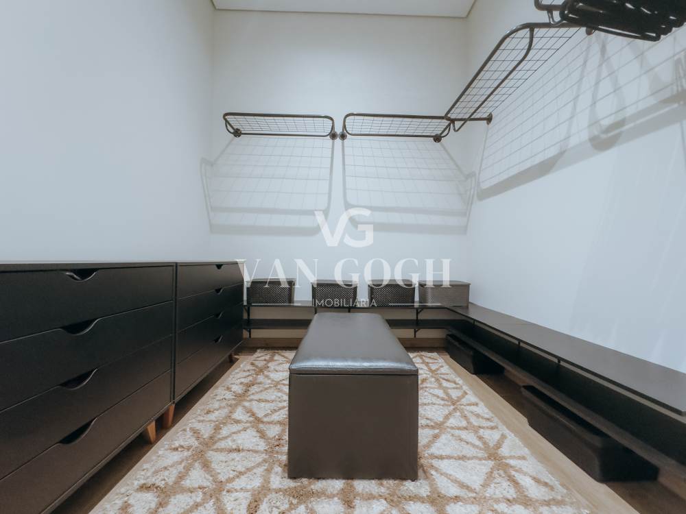 São 3 suítes amplas, incluindo a suíte master com closet, além de lavabo social. Os ambientes são totalmente integrados, com pé-direito duplo, iluminação natural privilegiada e projeto de interiores assinado pela arquiteta Mayara Gallo, que garante modernidade e funcionalidade. Para maior comodidade, todos os cômodos possuem ar-condicionado instalado e janelas com persianas automatizadas.