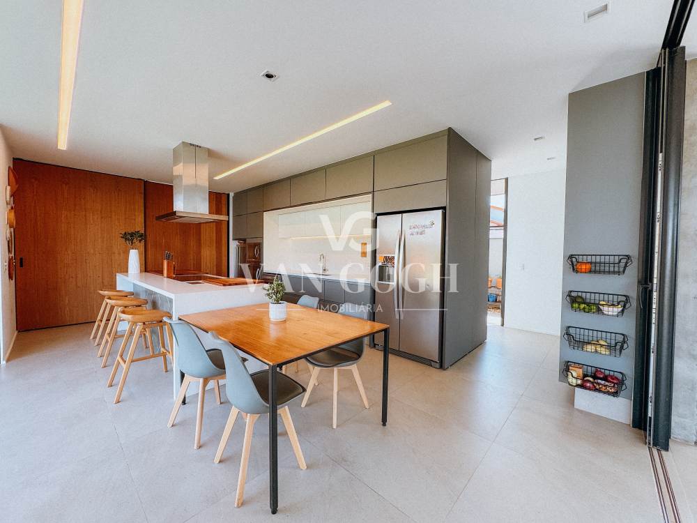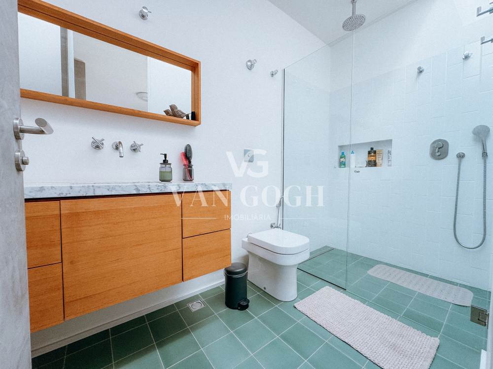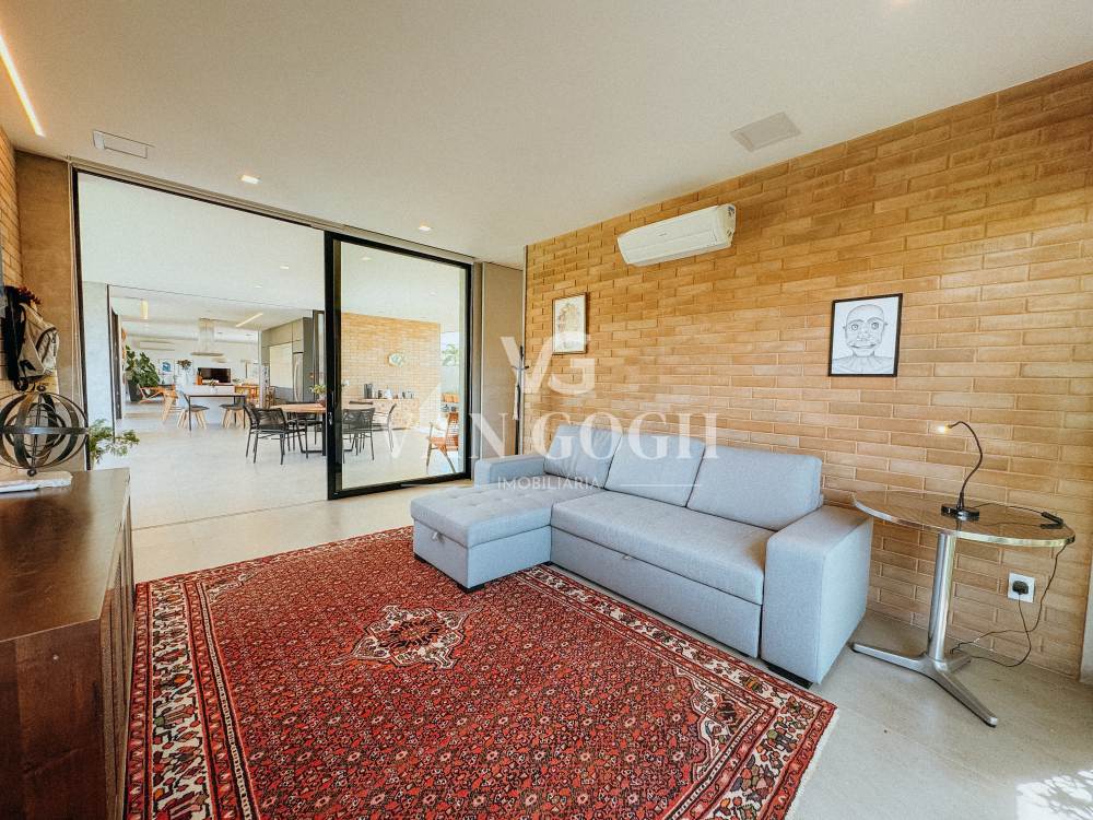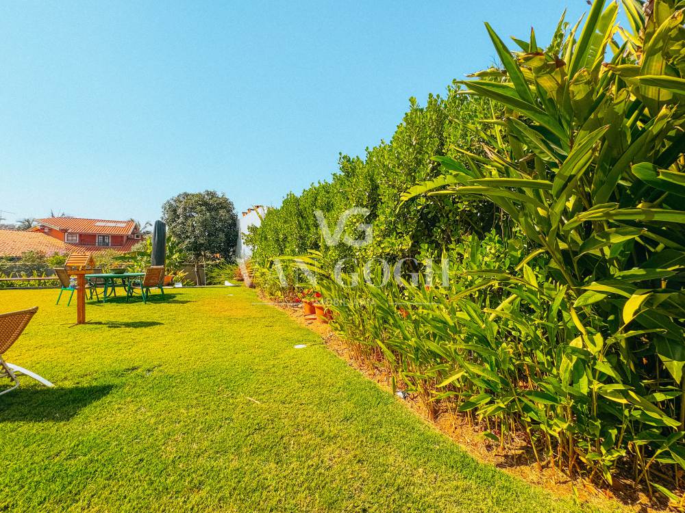 A casa também se destaca por seu compromisso com a sustentabilidade. Conta com sistema de captação de água da chuva, armazenada em cisterna para irrigação e uso parcial no imóvel, 16 placas fotovoltaicas para geração de energia e sistema próprio de tratamento de esgoto, garantindo menor impacto ambiental e eficiência no uso dos recursos.