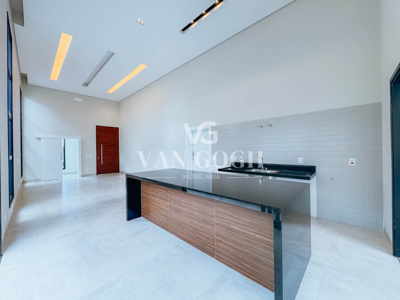 A área social impressiona pelo pé-direito duplo na sala e na cozinha, que amplia a sensação de espaço e proporciona excelente iluminação natural. Os ambientes são integrados de forma elegante, criando um espaço moderno, sofisticado e extremamente agradável tanto para o dia a dia quanto para receber convidados. Os acabamentos de alto padrão reforçam o cuidado em cada detalhe do projeto.