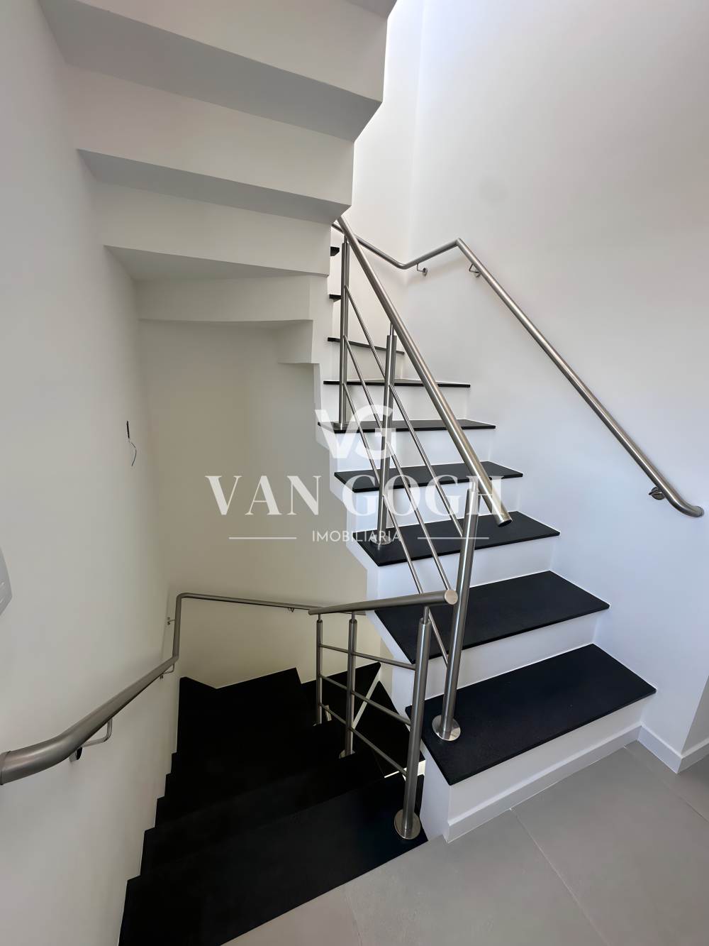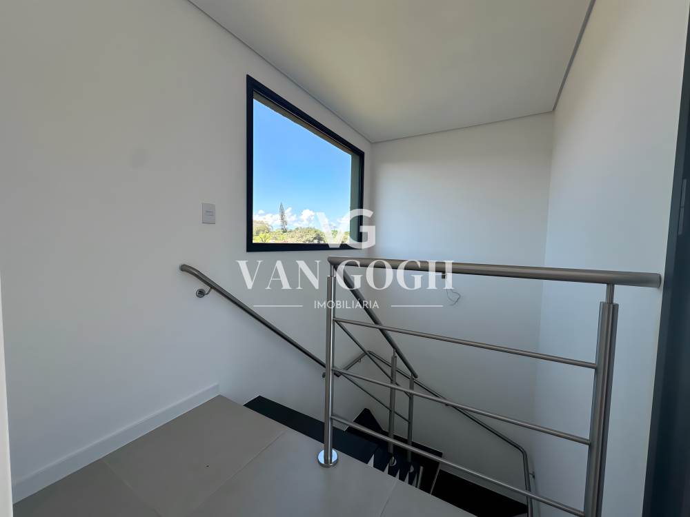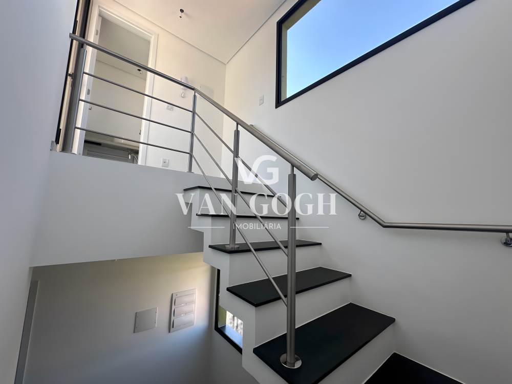 No piso superior, há três dormitórios, incluindo uma suíte elegante e um banheiro social adicional, garantindo praticidade para toda a família.