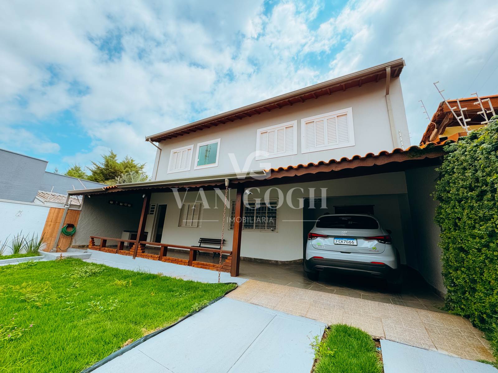 Para maior segurança e praticidade, o imóvel possui portão eletrônico e interfone. Há também uma vaga coberta e duas vagas adicionais na rampa.